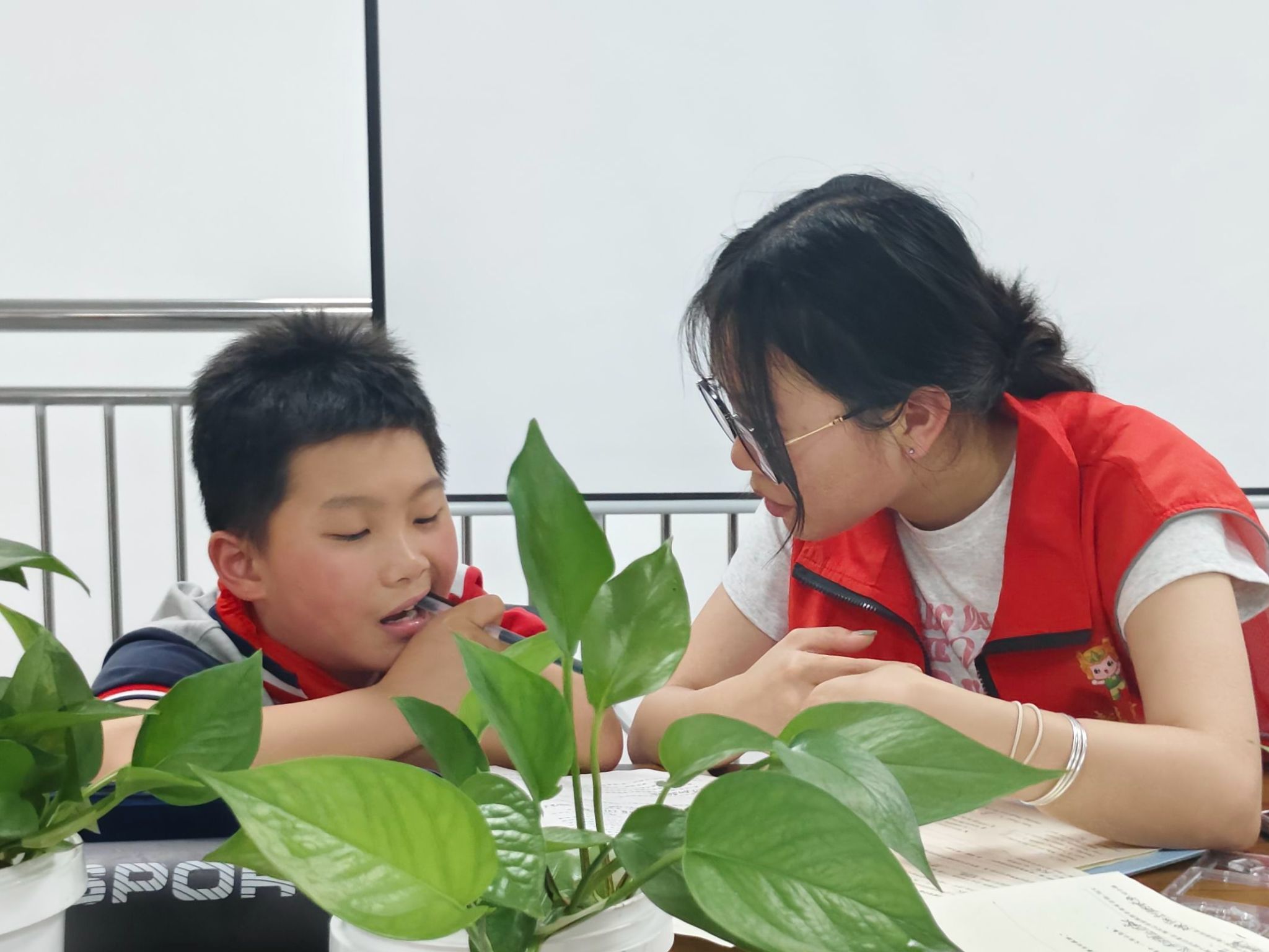 图一为志愿者陪伴小朋友做作业