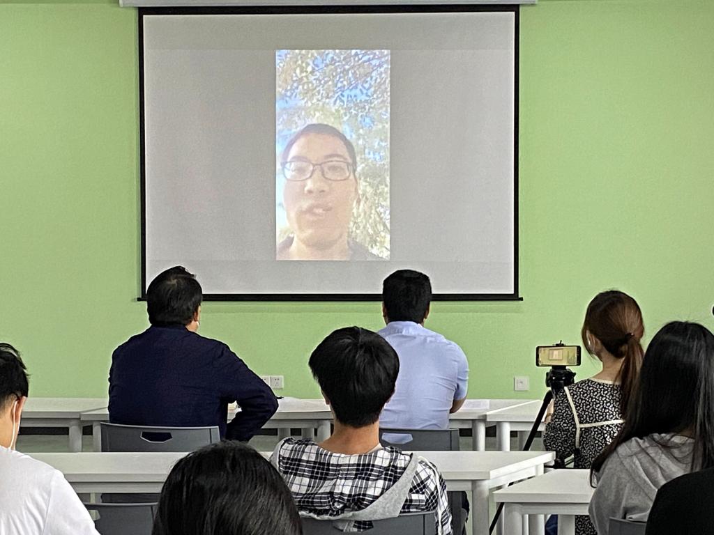 活动中,视频连线了正在新疆维吾尔自治区阿克苏地区乌什县服务的“西部计划”志愿者、机械学院2021届本科毕业生张凯分享了他在当地工作的心得感受。陈宇凡代表校团委向同学们介绍了今年“西部计划”的相关政策,就同学们关心关注的服务内容、招募流程、支持政策等问题予以了重点解答。
