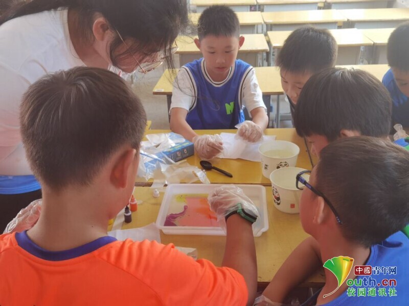 “让海风吹拂了五千年,每一滴泪珠仿佛都说出你的尊严”,一阵阵歌声仍萦绕耳畔,一幕幕认真专注的模样浮入眼帘。“他们都很伟大”“要向他们学习”“谢谢那些负重前行的人”,这是孩子们观看《我和我的父辈》后发出的感叹。墨笔丹青,几笔勾勒似云锦,一幅幅多彩的水拓画跃然丝巾之上......