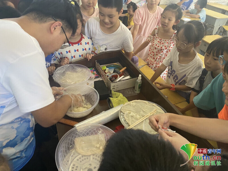 图为实践队成员和小朋友们共同制作米酒。中国青年网通讯员 陈天泽 摄