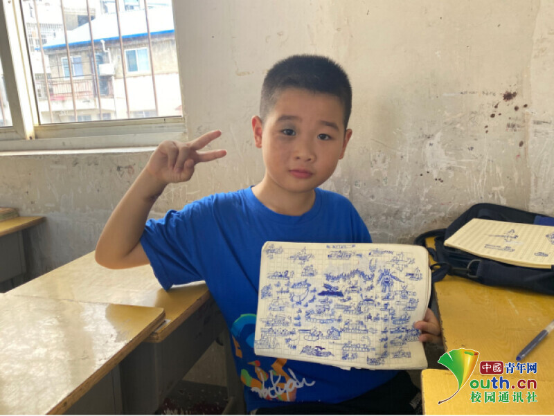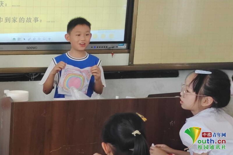 图为小朋友向实践队成员展示所画的各种模型。中国青年网通讯员 陈天泽 摄