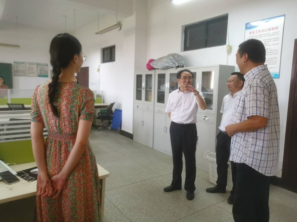9月6日上午,公司党委书记田辉玉到太阳集团tcy8722调研指导工作,走访博士工作室、教师工作室和研究生工作室等。学校办公室主任高建勋陪同调研。