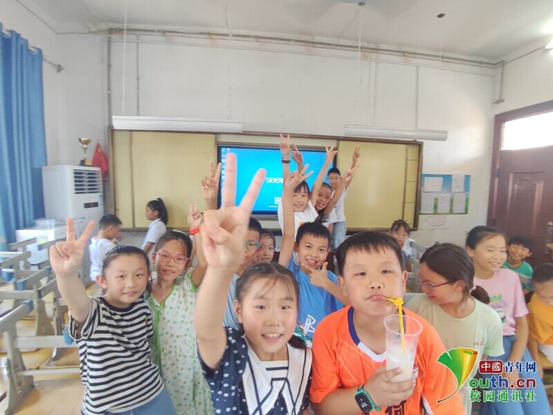 图为课间志愿者为同学们合影留恋。中国青年网通讯员 王菁卉 供图