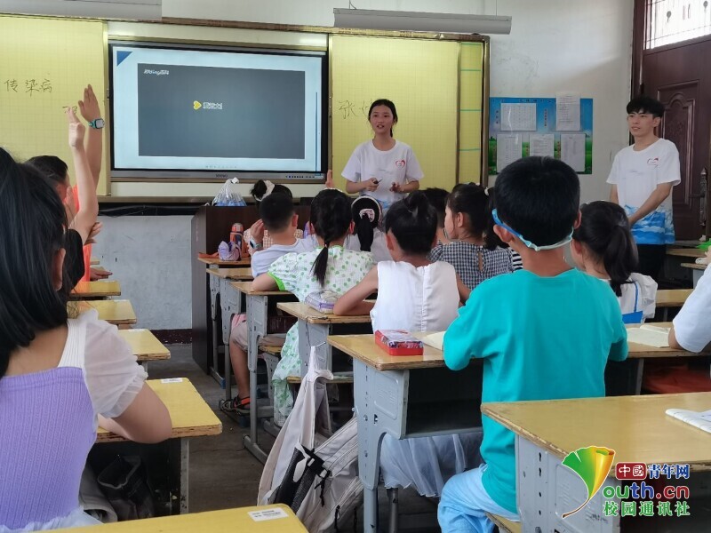 图为志愿者为同学们讲解预防传染病的知识。中国青年网通讯员 王菁卉 供图
