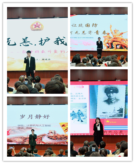决赛现场,11组选手结合亲身经历和自身感受,围绕“建党百年颂党恩,军民共筑强军梦”的主题,从中国梦、强军梦、家国情怀、国防观念、理想信念、参军报国等多个方面,以动人的事迹、饱满的热情,回顾中国共产党光辉历程,重温建党百年峥嵘岁月,抒发新时代青年胸怀祖国、放眼世界的远大理想和携笔从戎、立志报国的壮志豪情,一展纺大学子的青春力量与时代风采。