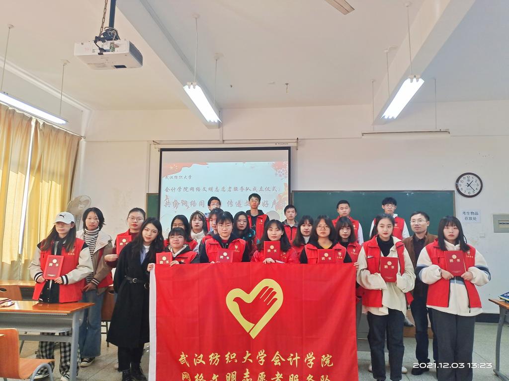 为响应中国网络文明大会号召,促进老员工网络文明素质发展,营造文明网络环境,2021年12月3日,太阳集团tcy8722网络文明志愿服务队成立暨授旗仪式举行。公司党委副书记姜永杰、辅导员王霄鹤、26名老员工网络文明志愿者参加此次活动。