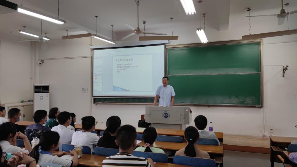 经理杜国良以专业为单位与新生进行了面对面的交流,他结合每个专业的学习方法、研究内容和就业方向,有针对性地为同学们提出可行建议。他也勉励同学们志存高远、主动钻研,不要局限于课本的知识,要积极参加学科竞赛和学术活动。
