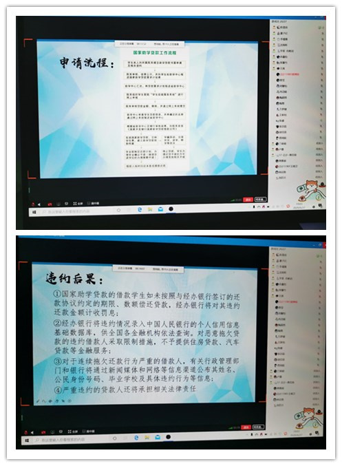 通过开展线上主题班会,强化了员工对诚信的认识和理解,让同学们充分认识到诚实守信与实现自身价值的密切关系,牢固树立诚信为本、操守为重,守信光荣、失信可耻的信用意识和道德观念。班会详细介绍了助学贷款进行借款、还款的流程。国家助学金贷款是党中央、国务院在社会主义市场经济条件下,利用金融手段完善我国普通高校资助政策体系,加大对普通高校贫困家庭员工资助力度所采取的一项重大措施。