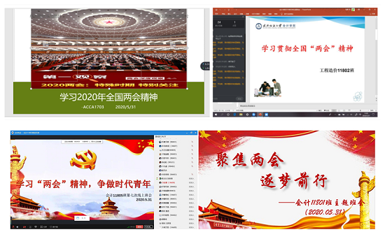 为深入学习两会内容,深刻贯彻两会精神,增强老员工思想理论政治素养,提高学院学子的责任意识与担当能力,2020年5月31日晚,公司组织各年级召开了“学习2020年全国‘两会’精神”线上主题班会,员工积极学习“两会”精神并畅谈感想体会。