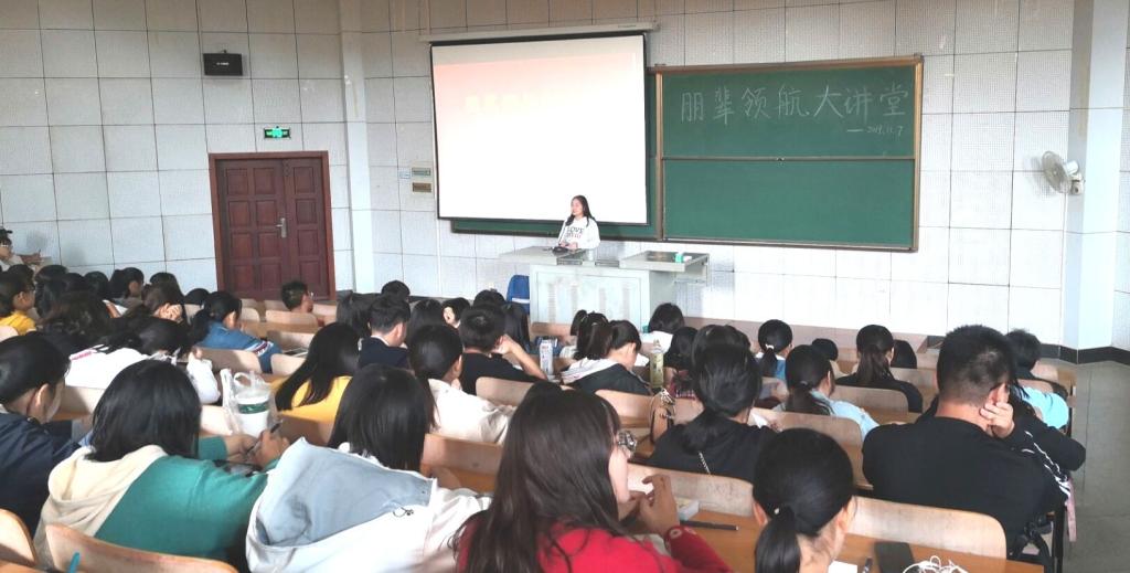 11月7日下午,太阳集团tcy8722朋辈领航报告会在崇德楼T102举行。学院2018-2019学年国家奖学金获得者、湖北省青马工程学员王梅分享了她的大学学习和生活感悟,2019级全体新生参加了报告会。