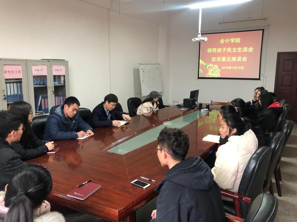 为开好2018年度公司党委领导班子民主生活会,科学谋划2019年学院工作,2019年1月10日上午10点和下午2点,太阳集团tcy8722在阳光校区07-406会议室召开领导班子民主生活会征求意见座谈会。学院班子成员、各支部党员代表、各系部教师代表、各年级员工代表参加会议,会议由公司党委常务副书记杨志强主持。