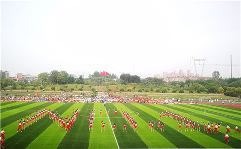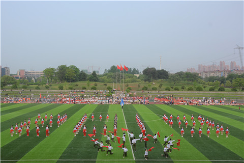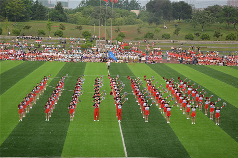 踏着轻快的步伐,会院学子身着热情似火的红色队服入场。伴随着激情昂扬的口号,他们散开成箭头形;前排同学们手持红旗,在深情又富有节奏感的音乐中挥舞,动作极具力量感,开场便吸引住大家的目光。随后曲风一转,队伍变换成三角形方阵,开启了集体啦啦操表演。其舞步之整齐,情绪之饱满,令人叹服。在表演中,同学们相继摆出“2019”、“WTU”、“NO.1”等造型,令在场观众目不暇接,引来阵阵欢呼。更为精彩的是接下来腰鼓队的出场,他们步伐稳健,鼓点声声,震撼人心。最后在激情澎湃、铿锵有力的“青春真能量,会计最闪亮”呐喊声中,公司表演结束,赢得了评委与观众的热烈掌声。