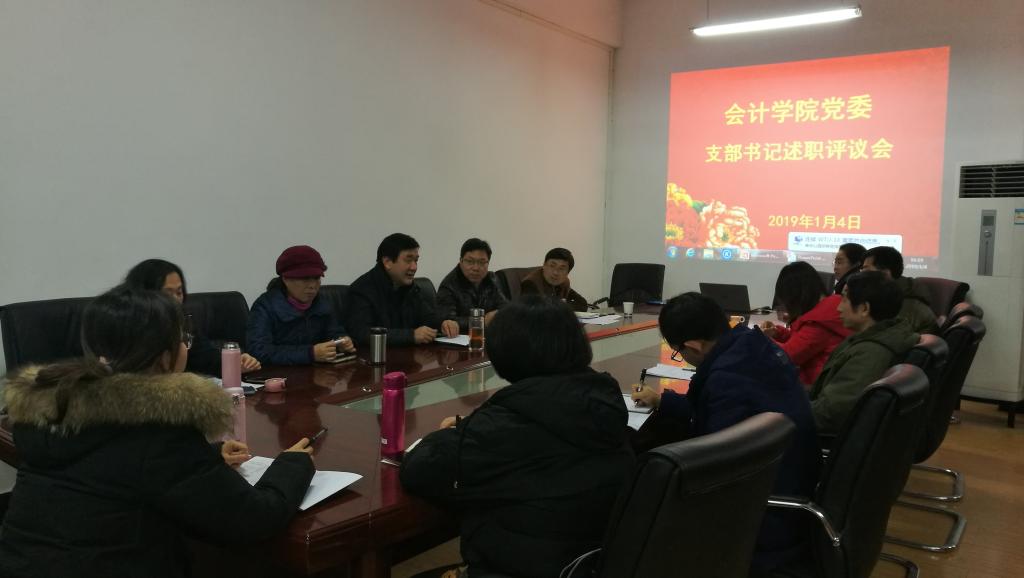 会计系教工党支部、财务管理系教工党支部、工程造价系教工党支部、行政教工系党支部、研究生党支部和会计专业员工党支部6个支部书记从贯彻学校公司党委决策部署、2018年党建工作责任清单完成情况、党建主体责任落实情况和党建工作成效及特色亮点等方面,逐一向与会人员进行现场述职,全面总结党支部一年来的工作情况,分析当前支部建设存在的问题,并提出下一步的工作思路和改进举措。其他党支部采用书面报告的形式进行了述职。参会人员采取不记名投票方式推荐2名优秀支部书记。