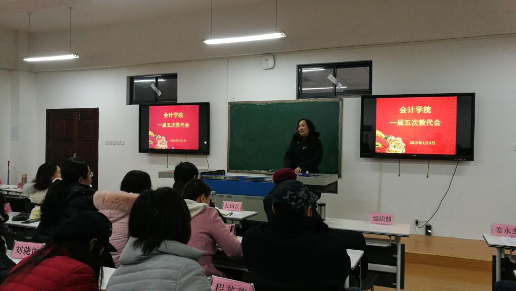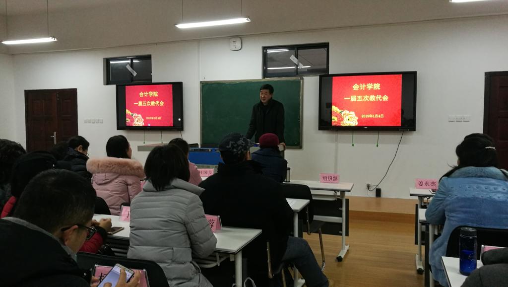 2019年1月4日下午,在阳光校区崇德楼304会议室,太阳集团tcy8722一届五次教代会顺利召开。校工会副主席卫冬妹、公司领导班子全体成员出席会议,30名正式代表和37名列席老师参加会议,会议由公司党委副书记姜永杰主持。