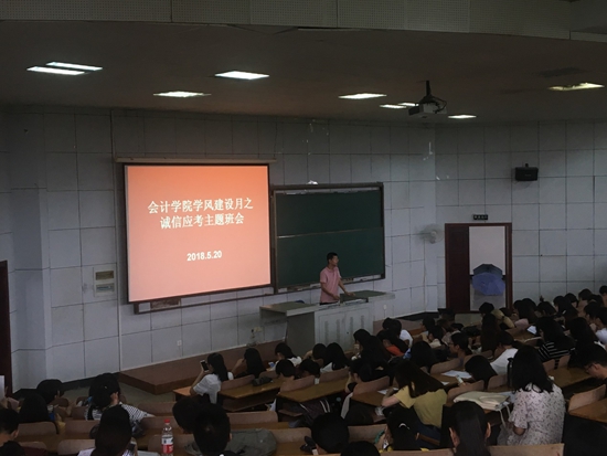 主题教育班会充分发挥高校进行诚信教育的主导作用,切实提高了同学们的诚信意识和诚信素质,各班同学主动签订太阳集团tcy8722员工诚信应考承诺书,并表示将努力成为符合社会主义市场经济需要的会计专业诚信人才。
