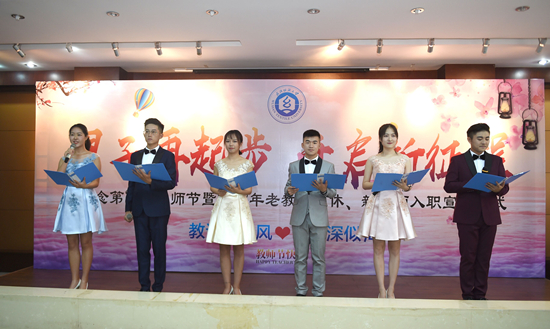 2018年9月10日下午,为庆祝我国第34个教师节,学校举行教职工荣休暨入职双仪式庆祝第34个教师节。全校各级领导出席仪式,学校相关职能部门负责人、各二级单位党委书记和工会主席以及部分教职工代表参加了此次会议。