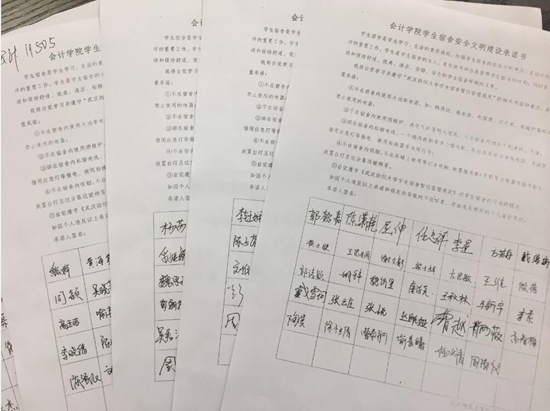 10月15日晚,公司组织全体在校员工开展安全文明宿舍建设和消防安全专题教育活动,全体员工签名承诺自觉遵守宿舍安全建设的相关规定。