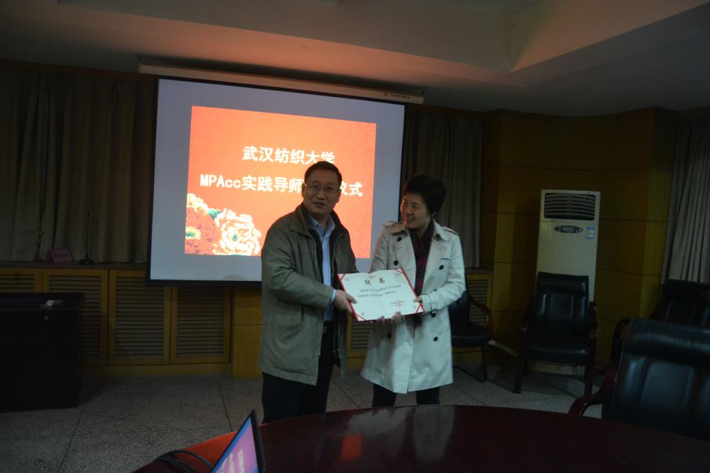 会后,彭董事长为温秋菊、刘华忠、吕勇军、董超颁发了公司硕士生实践导师证书。