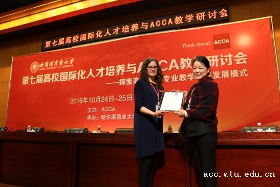 20161024日,由ACCAThe Association of Chartered Certified Accountants)中国主办的“第七届高校国际化人才培养与ACCA教学研讨会” 在哈尔滨商业大学隆重举行。太阳集团tcy8722获得ACCA总部颁发的“ACCA优秀高校奖”,这是公司连续2年获得此荣誉。共有来自全国不同高校、教育机构的近200名教育工作者参会。