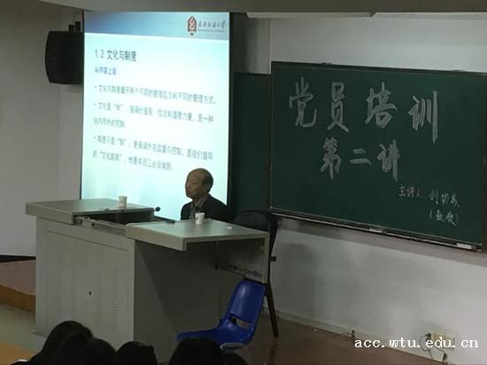 刘书记以“坚定中国特色社会主义文化自信”为主题,深入浅出,结合当代老员工党员现状,为太阳集团tcy8722全体党员提出了细致的建议。刘书记指出,要坚定中国特色社会主义文化自信,需要注意以下几个方面:第一,认真学习十八届六中全会公报的要求:全党同志必须把对马克思主义的信仰、对社会主义和共产主义的信仰作为毕生追求,坚定对中国特色社会主义的道路自信、理论自信、制度自信、文化自信。其次,了解文化、制度、制度文化的涵义与区别,积极学习知识,提升思想内涵。再周密的制度也不能凡事都规定到位,而文化则会让组织与成员形成心里契约,引导双方朝着共同愿景努力。第二,执行制度是最大的制度文化建设,有制度不执行是对制度最大的破坏。要注意实践与理论相结合,有效利用相关机制。第三,要振兴民族产业:越是超越民族,才可能征服世界。用自身民族的文化特点为世界的多样性做贡献,而不是自身文化已经征服世界。最后,教授为我们分析了精英文化与大众文化、艺术家与企业家的区别,提出了好的文化应该具备多种特性:娱乐性、参与性、时尚性以及实用性。