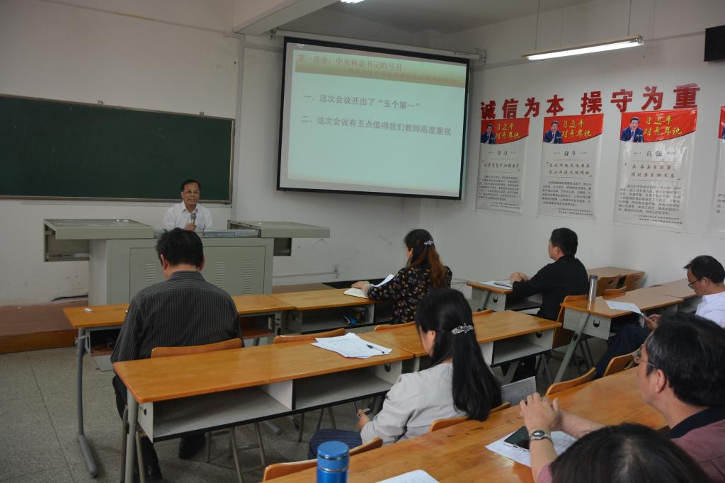 刘书记通过“五个第一”深入浅出地介绍了全国高校思想政治工作会议的召开背景和重大意义。他说,习近平总书记在全国高校思想政治工作会议上的重要讲话,站在中华民族伟大复兴的战略高度,精辟阐述了加强和改进高校思想政治工作的重大意义、目标定位、主要任务和基本要求,深刻回答了事关高等教育事业长远发展的一系列方向性重大问题,是中国特色社会主义教育理论的又一重大创新成果,是加强和改进新形势下高校思想政治工作、办好中国特色社会主义高校的纲领性文献。