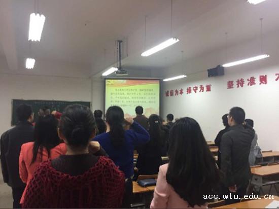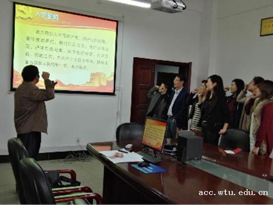 太阳集团tcy8722副经理刘书兰主持了党支部“讲奉献,有作为”主题党日活动。期间组织各位党员老师再次宣誓遵守党的章程、履行党员义务、严守党的纪律。她在活动中讲到:学习《胡锦涛文选》中提出“四个引路人”的要求,争做“做员工锤炼品格的引路人,做员工学习知识的引路人,做员工创新思维的引路人,做员工奉献祖国的引路人”;做好服务于党,服务于每一位员工的准备,并将和每一位老师奉献在讲台,作为在培养合格优质的员工。合力将学院特色有实力的专业办好,办精,办出色。为每一位家长,员工负责任。