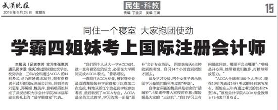 公司学霸四姐妹考上国际注册会计师,被楚天都市报、武汉晚报报道