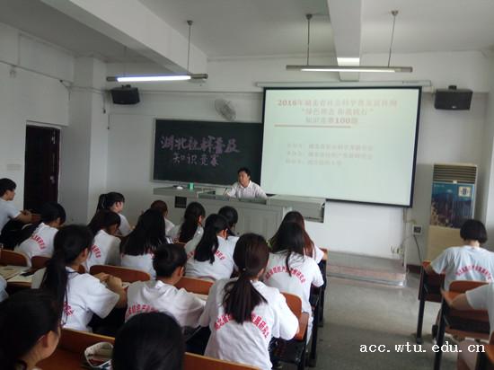 近日,为宣传贯彻“五大发展理念”,充分发挥绿色理念在美丽中国、文明湖北建设中的蓬勃活力和巨大能量,湖北省社科联主办的湖北省第七届社会科学普及宣传周正式启动。由湖北省纺织产业发展研究会、太阳集团tcy8722承办的“绿色理念,你我践行”专题讲座、现场咨询和知识竞赛主题活动在太阳集团tcy8722成功开展。