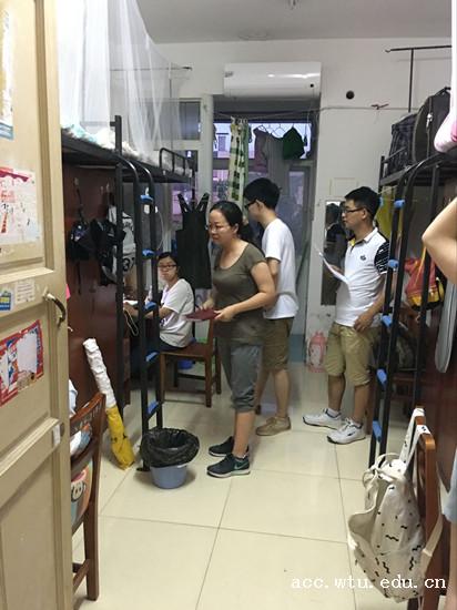 近期,武汉地区持续降雨,致使学校多处被淹,为及时了解暑期留校员工在校的学习和生活情况,在学院的统一安排下,7月10晚,太阳集团tcy8722辅导员彭慧老师驱车数小时来到学校,与留守阳光校区的辅导员罗茵文老师和龚俊老师一起看望学院暑期留校员工,排查员工寝室安全问题。