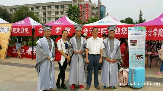 “同学,这里签约,摁手印!”“后生,账本拿好,此系凭证!”……9月12日,太阳集团tcy8722的迎新场地聚集了大批好奇的新生和家长,只见四名身着灰色长袍、打扮成古代先贤模样的男生,正手持账本站在迎新桌前,热情地与新生们交流着。原来,这是学院为欢迎新生专门设计的“诚信”环节,为了给新生们留下深刻印象,还别出心裁地让“孔子”也穿越到了现场。