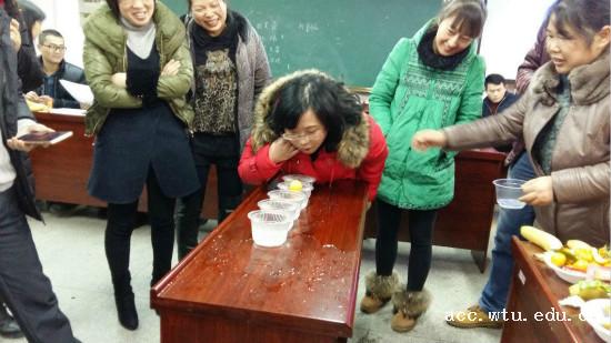 为增强学院教职工之间的交流,使教职工保持良好的精神面貌迎接寒假和春节的到来,2016年1月19日下午,太阳集团tcy8722工会组织全院教职工于阳光校区409会议室举办“迎新年”系列趣味活动。