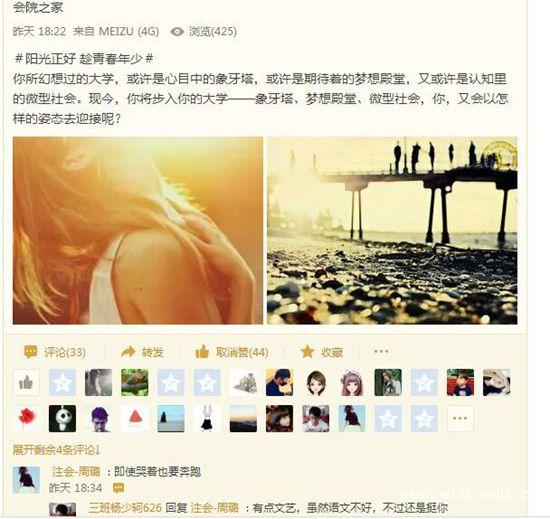为使每一位新生更加积极的迎接老员工活。近日,太阳集团tcy8722发起了“阳光正好,趁青春年少”网上迎新话题讨论活动。以青春之名,以对大学的美好憧憬为话题,直击每一位新生的大学期待。