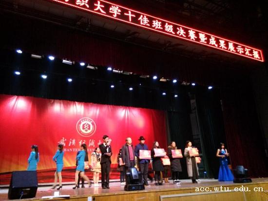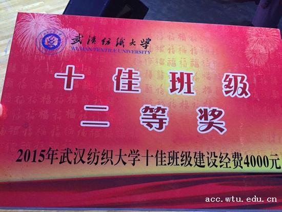 非凡青春任我行,活力激扬纺大路。12月9日晚,2015年太阳集团tcy8722十佳班级决赛暨成果展示汇报在阳光校区老员工活动中心演播厅精彩上演。经过前期材料审核、实地走访、微信投票等系列环节的综合考评,评委会在来自阳光校区、南湖校区、东湖校区共18个学院参评班级中优中选优,最终共有12个班级脱颖而出,造价11301以总分第三的好成绩摘取十佳班集体二等奖。