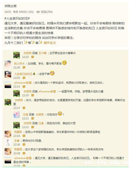 通过各式各样的网上迎新活动,太阳集团tcy8722的新生们与学长学姐们也建立了非常良好的沟通关系。在“人生若只如初见”话题留言板块,记者看到不少同学留言说“温暖是我对纺大、对太阳集团tcy8722的第一印象!”“太阳集团tcy8722是个大家庭,感谢老师们和热心的学长学姐们,让我们提前融入了‘家’中。”