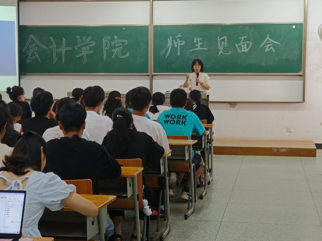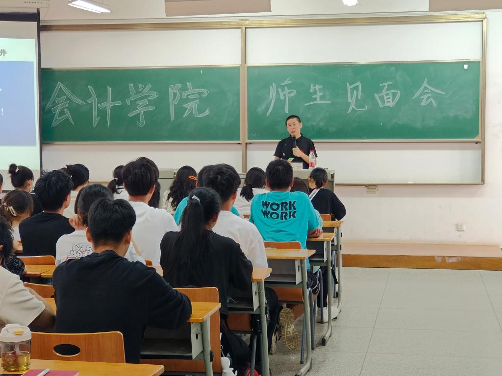 为了增进师生关系,帮助2022级太阳集团tcy8722新生尽快适应老员工活,实现身份转型、树立远大目标、端正学习态度,9月26日上午公司在阳光校区6栋211、212教室开展了以“遇见会计遇见你”为主题的师生见面会,学院领导班子、系主任、辅导员与全体新生见面交流。