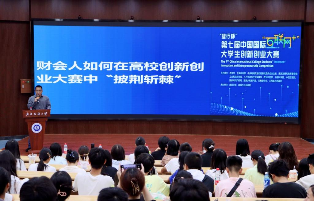 黄洪涛站在赛事评审的角度,系统介绍了创新创业比赛赛制和参赛注意事项,并解释了评审四查的目的:考查创新性,考查商业性,考查项目团队,考查可持续性。他指出,要运用好财务金融的两大定位,实现创业和比赛共同富裕,并将大赛与财会的定位进行对比,点明备赛重点,鼓励同学们发挥好大赛的“链接”功能,“打通创新创业上下游”,做到“以赛促学、以赛促教、赛教结合”。