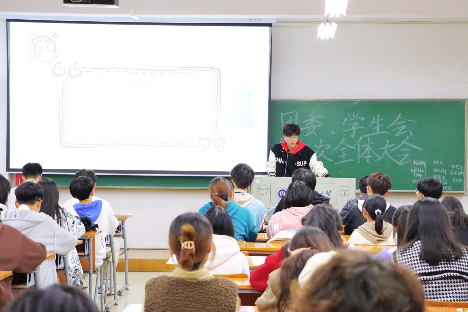 各部门负责人就近期迎新、招新等工作进行了总结,也简要介绍了下一阶段的重点工作。会议最后,全体参会人员在阶梯教室合影留念,为本次大会划下了完美的句号。