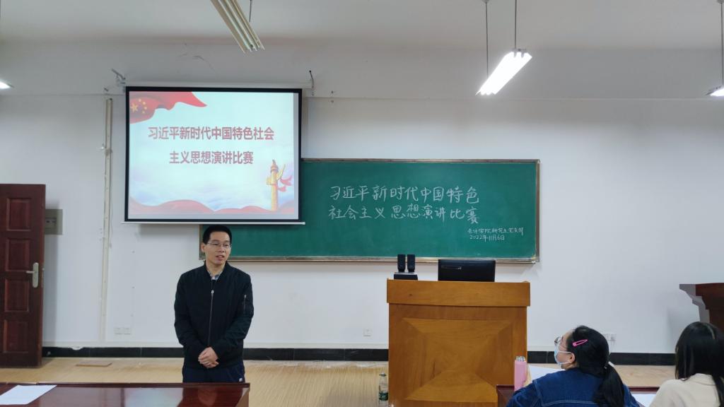 韩园园老师在比赛开始前阐述了举办此次演讲比赛的意义,并对各位参赛选手给予鼓励。随后参与比赛的九组选手声情并茂,慷慨激昂的表达了自己对习近平新时代中国特色社会主义思想的理解与感悟。