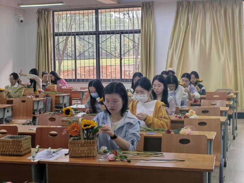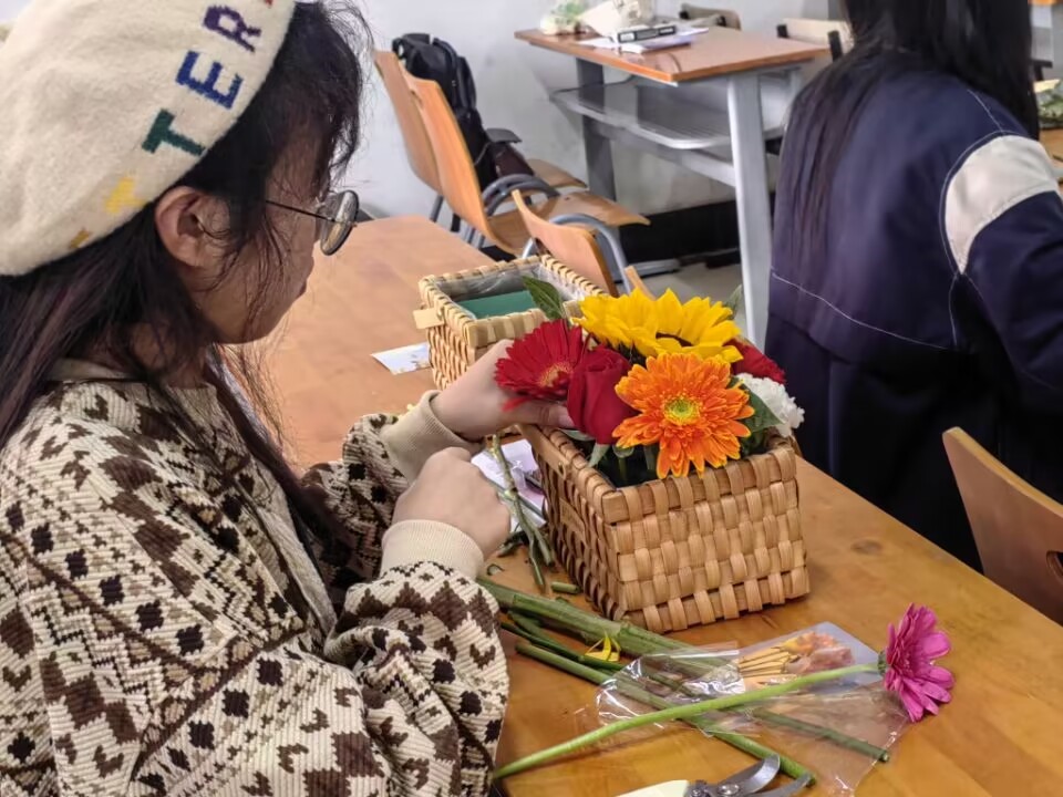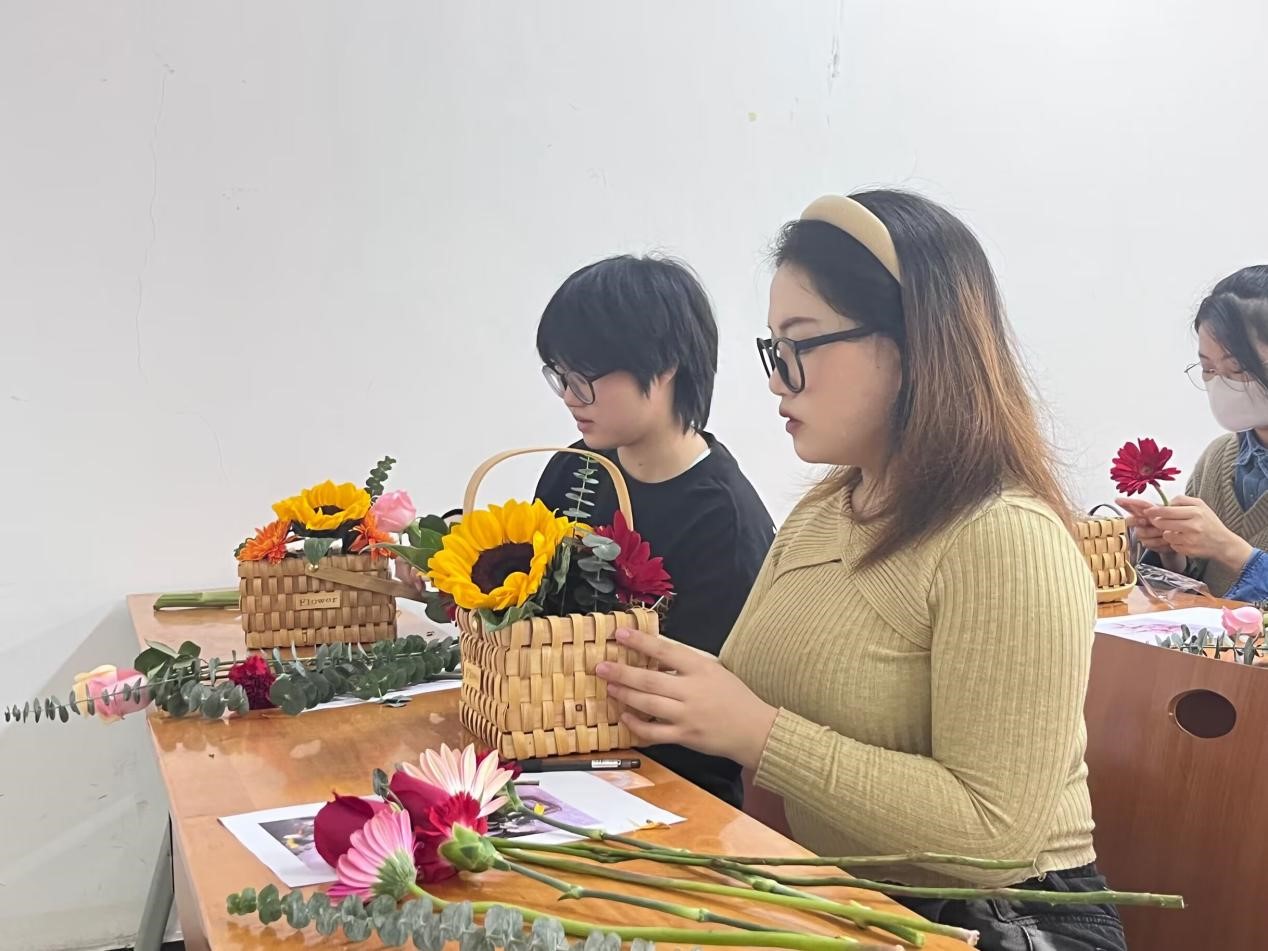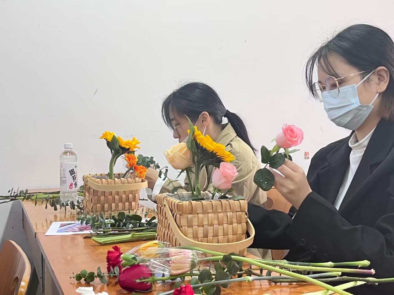 活动伊始,院员工会权益保障部负责人姜南坤对插花的流程进行了简要介绍,同学们跃跃欲试。随后,大家自由选择喜爱的花束进行创作,亲手感受插花艺术的魅力,每个人都乐享其中。