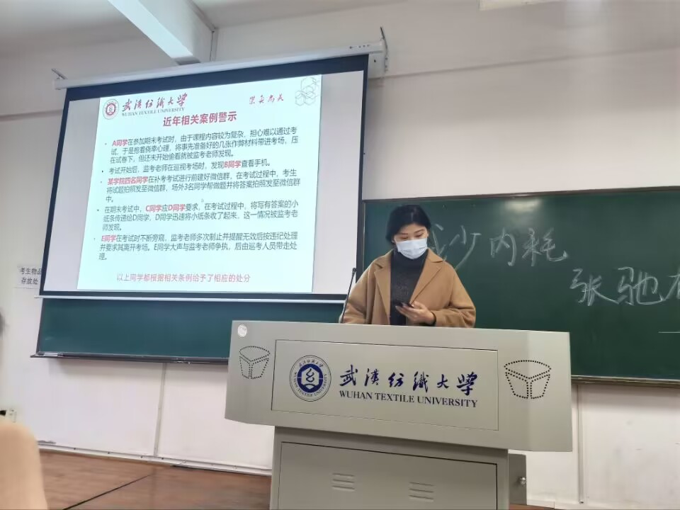 辅导员鼓励同学们提振信心,以饱满的精神面貌投入到期末备考中。同时,辅导员借助生动的案例,向同学们讲解了考试违纪行为带来的后果,希望同学们能勤奋学习、积极备考、诚信考试。