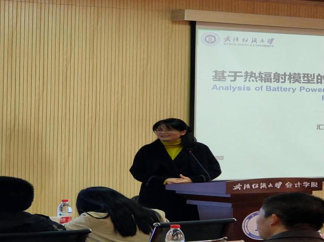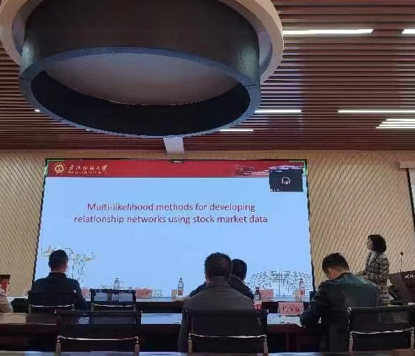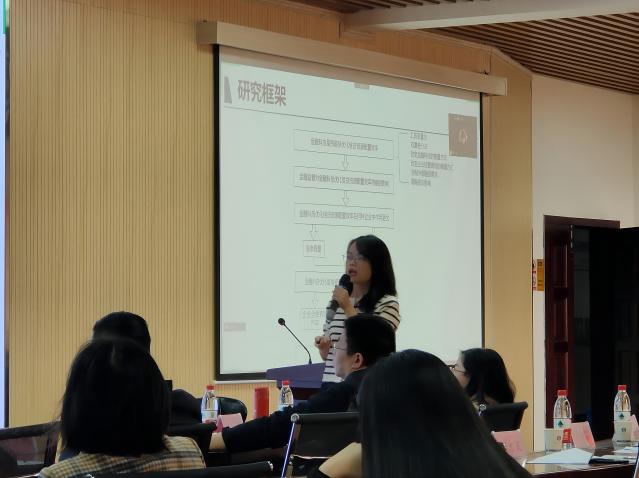 经济学院郭雪博士对其科研论文“基于极大似然估计的股票相依网络构建”进行分享,吴锦峰教授、任俊霖副教授进行点评提问。吴锦峰提出关于项目落地场景的问题,任俊霖提出理论要与实际企业相结合的建议。