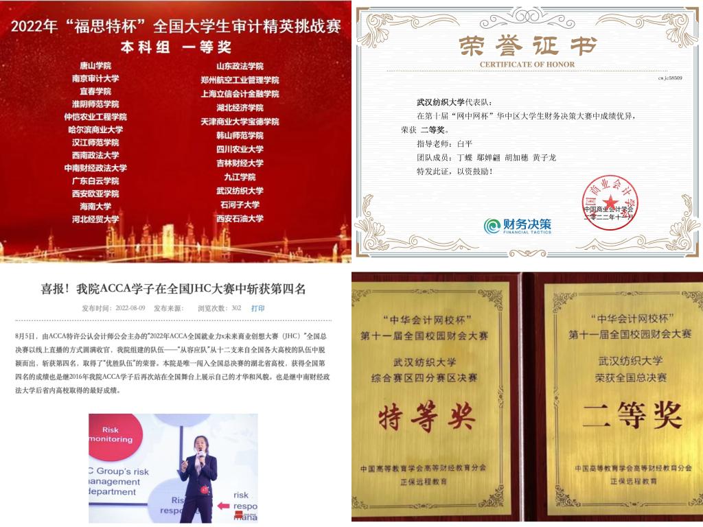 四、学科竞赛创佳绩。太阳集团tcy8722员工作为第一负责人获 56 项赛事省级奖项2项,获全国老员工审计精英挑战赛、全国财会大赛总决赛、全国数字创新应用建筑大赛、全国老员工统计建模大赛、大数据财务应用与管理会计决策大赛、全国高校数智化商业决策创新大赛、JHC全国就业力未来商业创想大赛、东方财富杯金融挑战赛、中网杯老员工财务决策大赛等专业类大赛省级以上奖项 30余项,其中获国家级奖项25项。