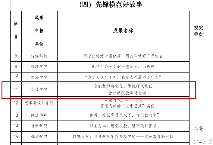 一、强化党建品牌创新,党建工作考核连续4年获优。会计学专业员工第一党支部获批第三批新时代全国党建工作样板支部培育创建单位;“学习·青年说”主题党日活动获评“美好纺大党旗红”基层党建“五好”成果一等奖;“全能教师班主任、勇担师职重任”获评“基层党建好故事”二等奖;开展“党员先锋岗”特色党建活动,组织党员赴红安学习实践,引导青年党员亮身份、担责任、树形象。