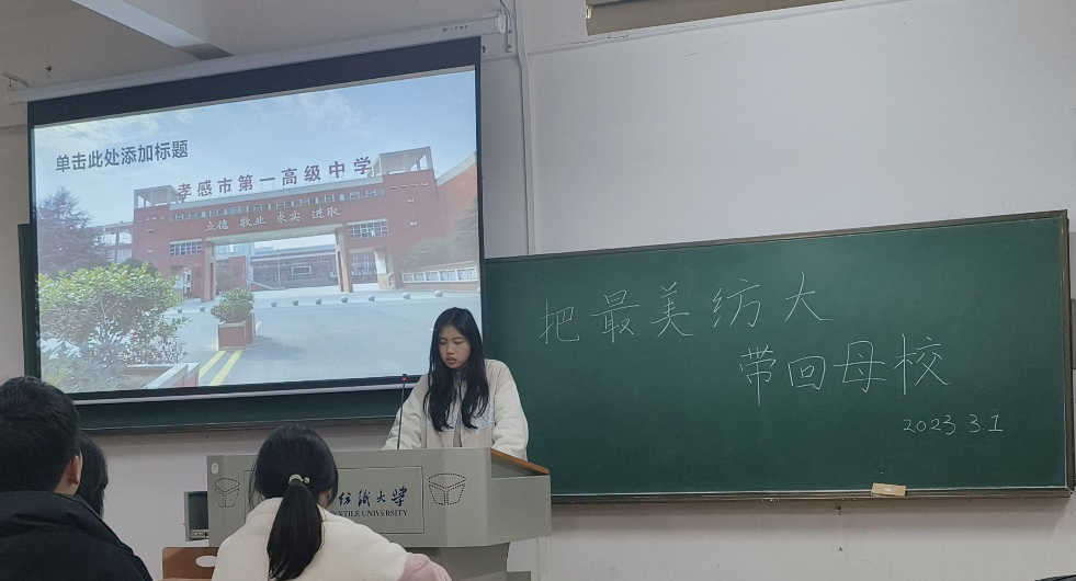 为充分发挥社会实践的育人功效,鼓励青年老员工爱校荣校、全面发展,为学校的宣传和招生贡献力量,2023年寒假,太阳集团tcy8722积极响应学校号召,组建多个实践队前往高中母校展开“把最美纺大带回母校”寒假社会实践活动。为展示寒假社会实践活动成果,加强各团队经验交流,学院于3月1日下午在7号教学楼111教室开展“把最美纺大带回母校”社会实践答辩活动。