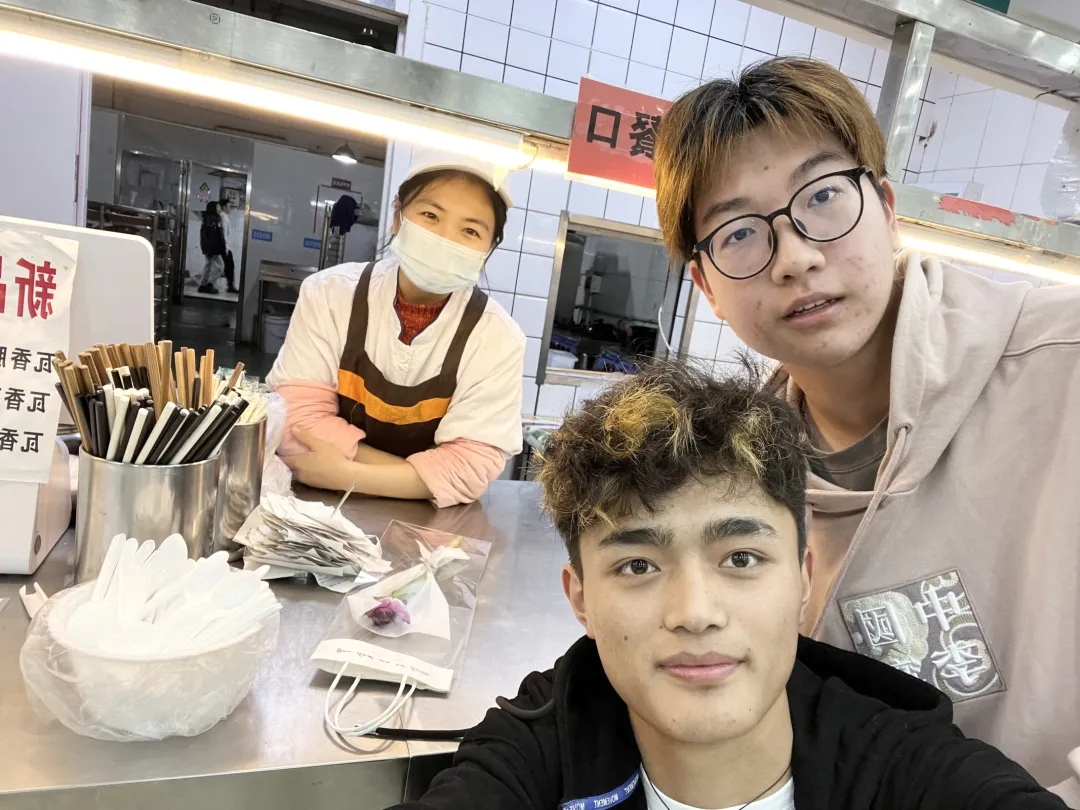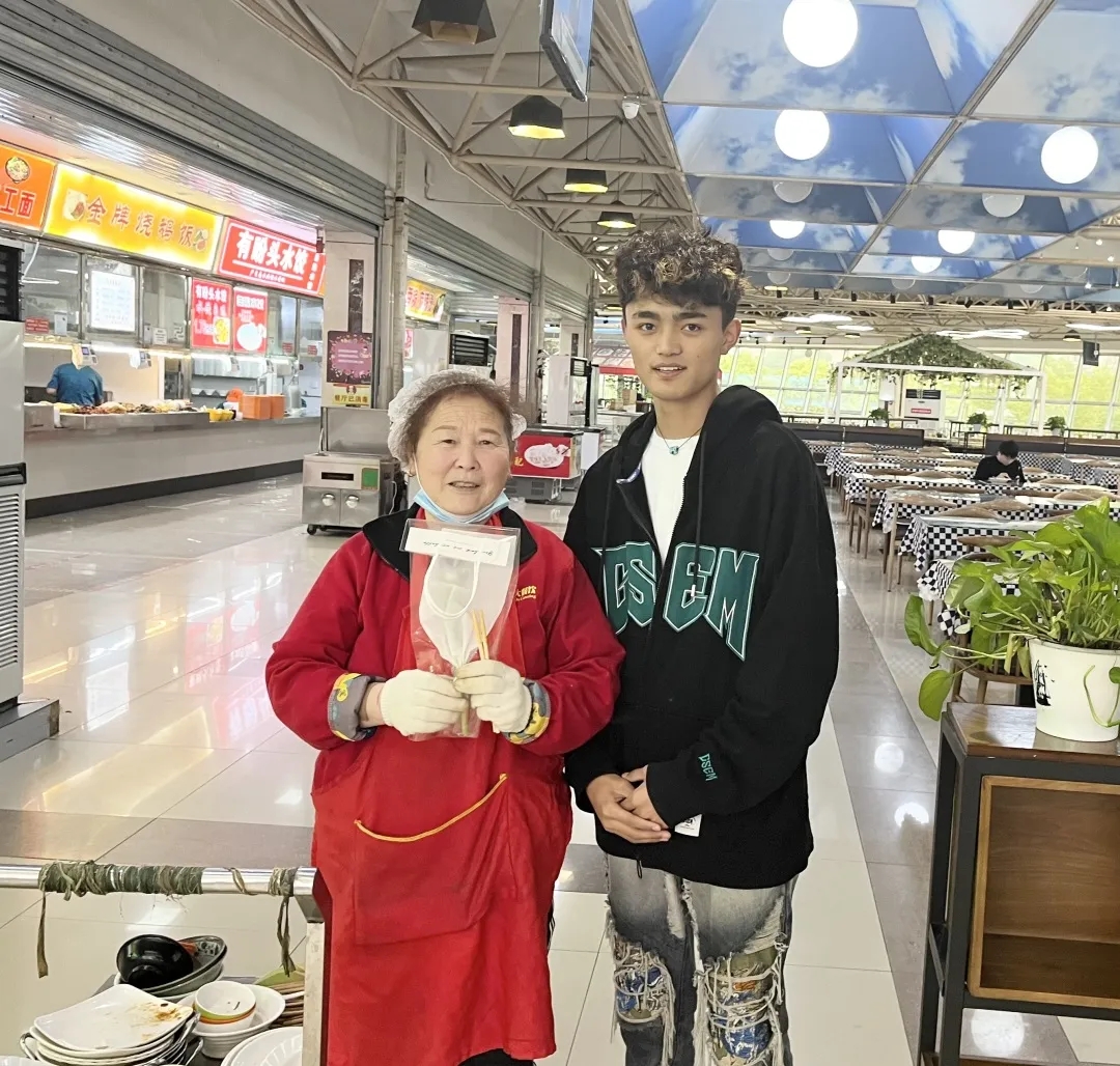 图为志愿者与食堂阿姨合影。