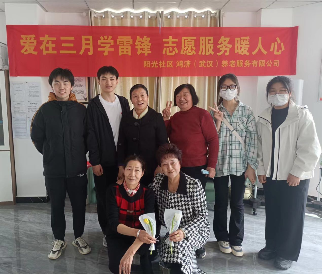 图为志愿者在阳光社区服务时的合影。