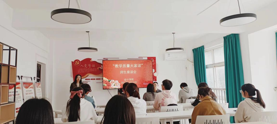 “我们班课程时间安排太紧凑了,缺少复习消化时间”“我们对智能财务缺少感受,希望可以去企业实地感受一下”......各班学习委员畅所欲言,反映了班级同学在课堂教学、考试、学科竞赛等方面遇到的重点、疑点和痛点问题,就进一步改进课程安排、教学方法、实习实训等提出了大量建议。与会老师一一记录,现场给予解答,并承诺学院自身问题尽快解决,其它问题向相关职能部门和学院反映,积极推动解决。陈蕾、杨孙蕾还就科学选课、高效学习以及养成良好作息习惯等给同学们提了许多建议。