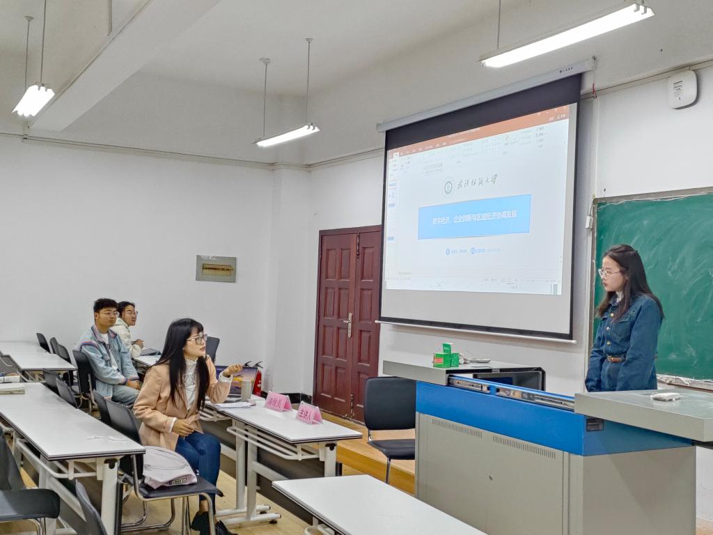 此次论坛中,魏琳鹏同学分享的论文题目是《数字经济、企业创新与区域经济协调发展》,从研究背景、文献综述、理论分析与研究、研究设计与数据说明及研究结论等方面对该论文进行分析讲解。漆老师对论文题目、信息更新、理论分析等方面提出建议。