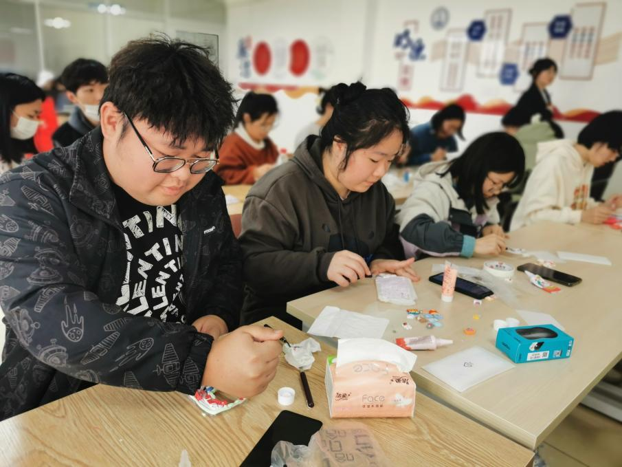活动伊始,工作人员分发奶油胶、手机壳、裱花嘴等DIY工具,播放手机壳的制作视频。同学们细心认真地使用DIY工具,尽情发挥创意和想象。