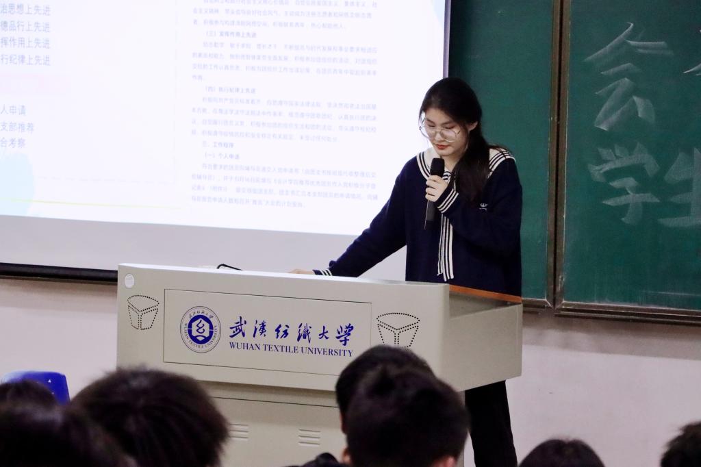 团委副书记刘娇艳鼓励同学们积极参与各部门组织开展的特色活动,为“一部一品”的推进提出建议、贡献活力。主席团成员沈时雨同学为获评“每月之星”的同学颁发了奖状。(通讯员:汪昕瑶)